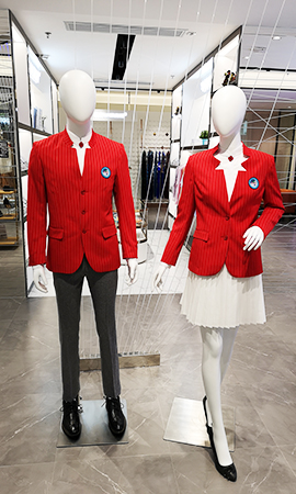 2018年11月第一屆中國(guó)國(guó)際進(jìn)口博覽會(huì),一套紅色志愿者服裝尤為引人注目。五星造型中式領(lǐng)口點(diǎn)綴四葉草紐扣別致新穎,中國(guó)紅上裝搭配灰、白色褲裙明快鮮亮,筆挺的西服、靈動(dòng)的裙擺、精致的工藝,彰顯著志愿者的專(zhuān)業(yè)、熱情、與活潑。而這些,正是由上服智源成衣為志愿者量身打造的。