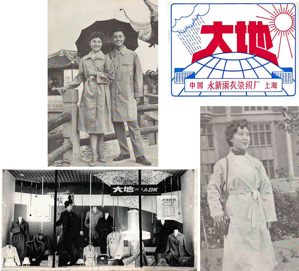 1953年3月17日,永新廠(chǎng)在新聞日?qǐng)?bào)上公開(kāi) 刊登征求企業(yè)中文商標(biāo)命名廣告,上海市靜安區(qū)第一中心小學(xué) 教員陳宏鈞先生以意為“譽(yù)滿(mǎn)全球、名聞大地”的“大地”牌脫穎而出, 同年7月2日,永新廠(chǎng)正式注冊(cè)使用“大地牌”商標(biāo)。 成為新中國(guó)最早的風(fēng)雨衣品牌,也是新中國(guó)成立后的第一例服裝注冊(cè)商標(biāo)。