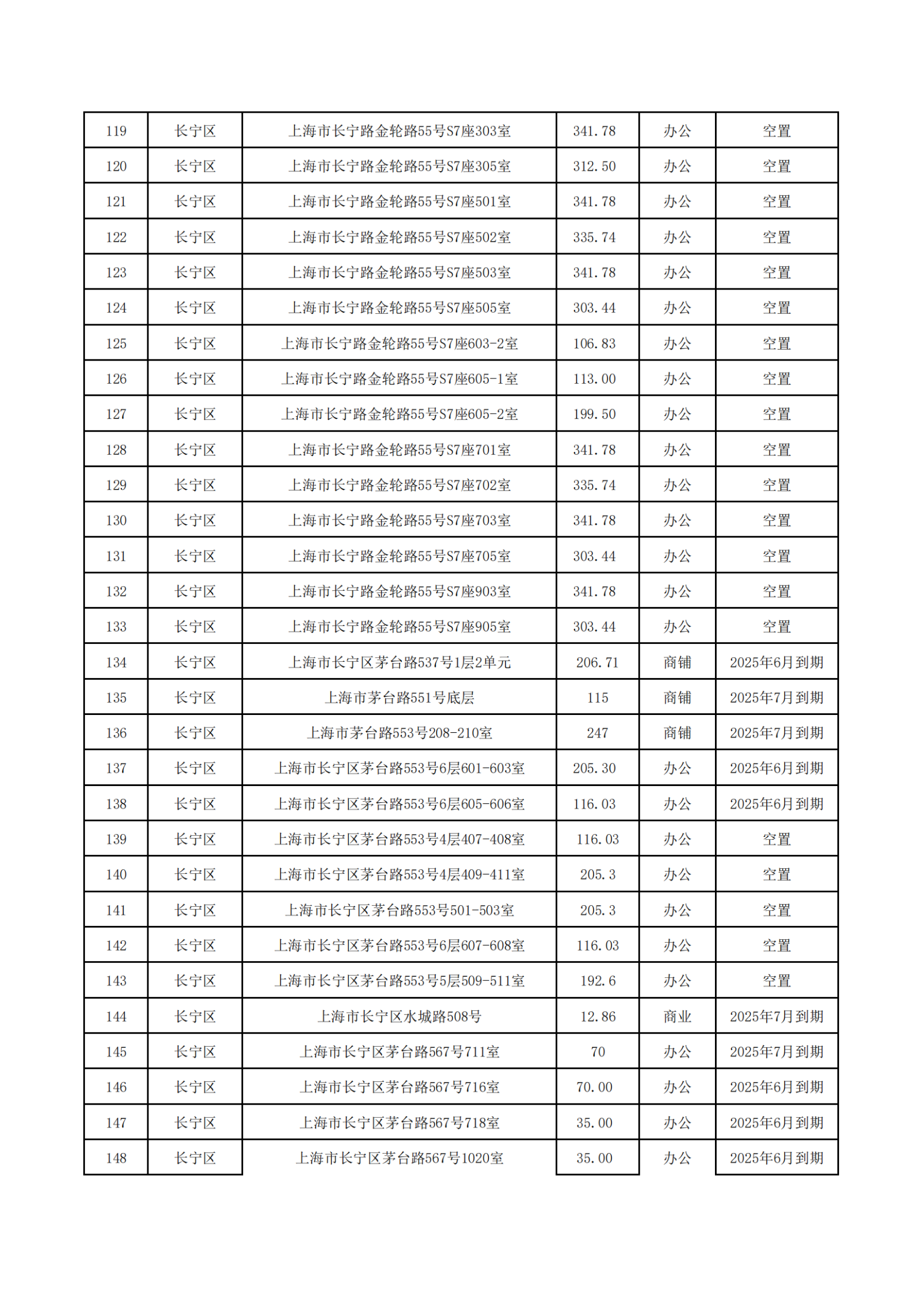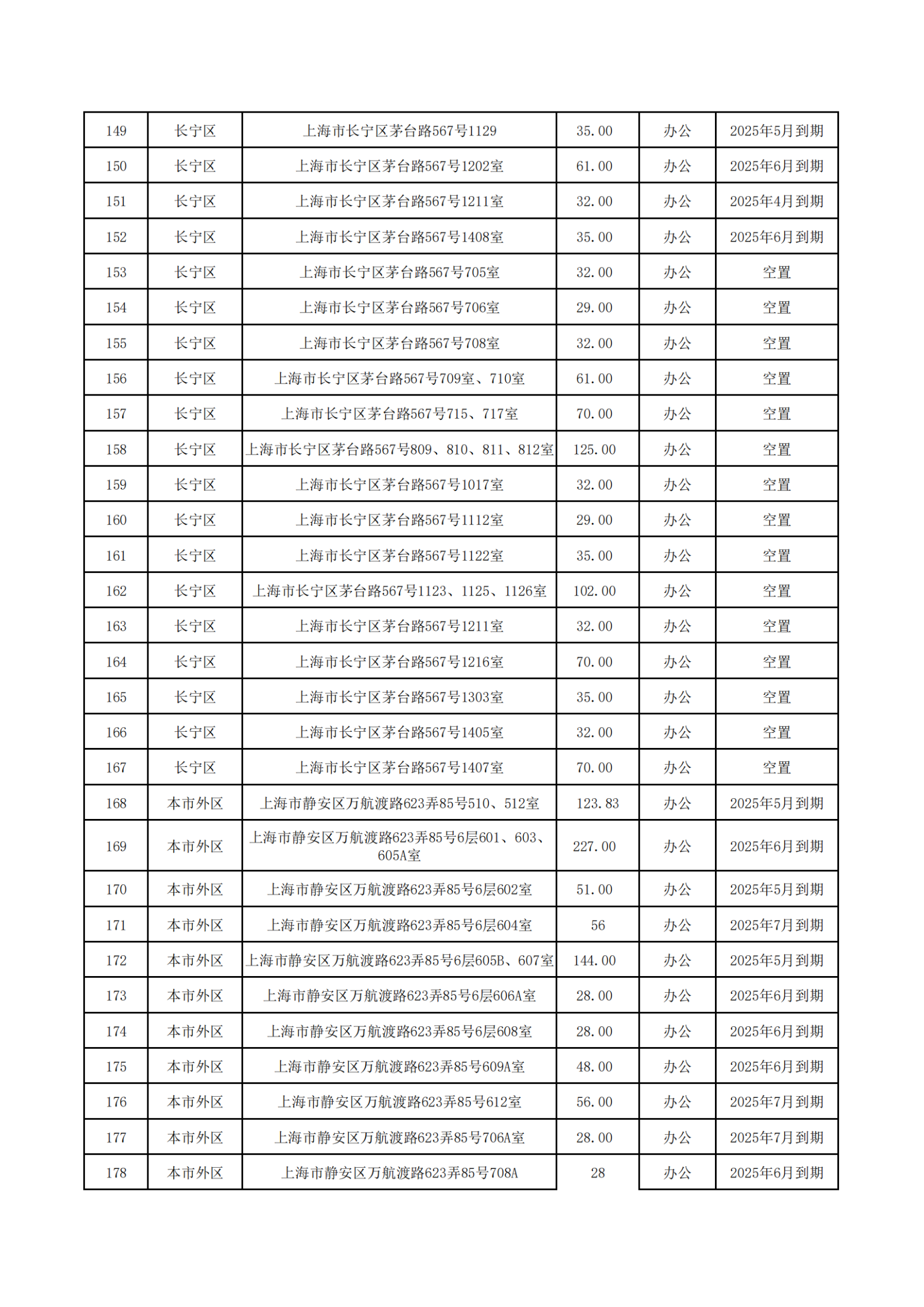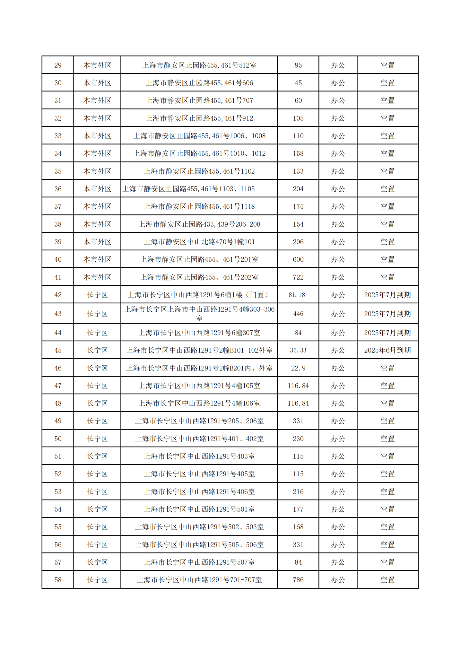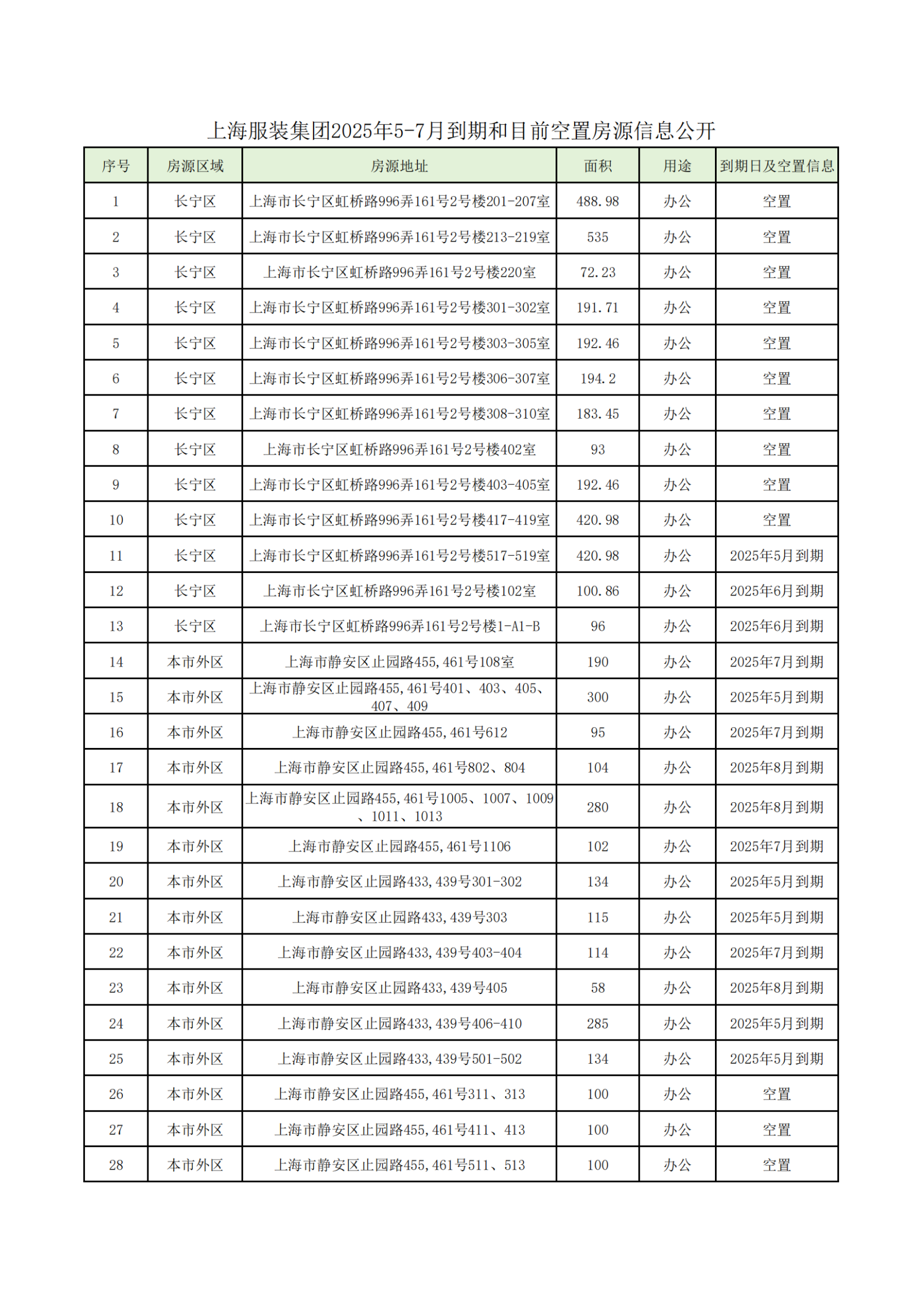 上海服裝集團(tuán)2025年5-7月到期和目前空置房源信息公開