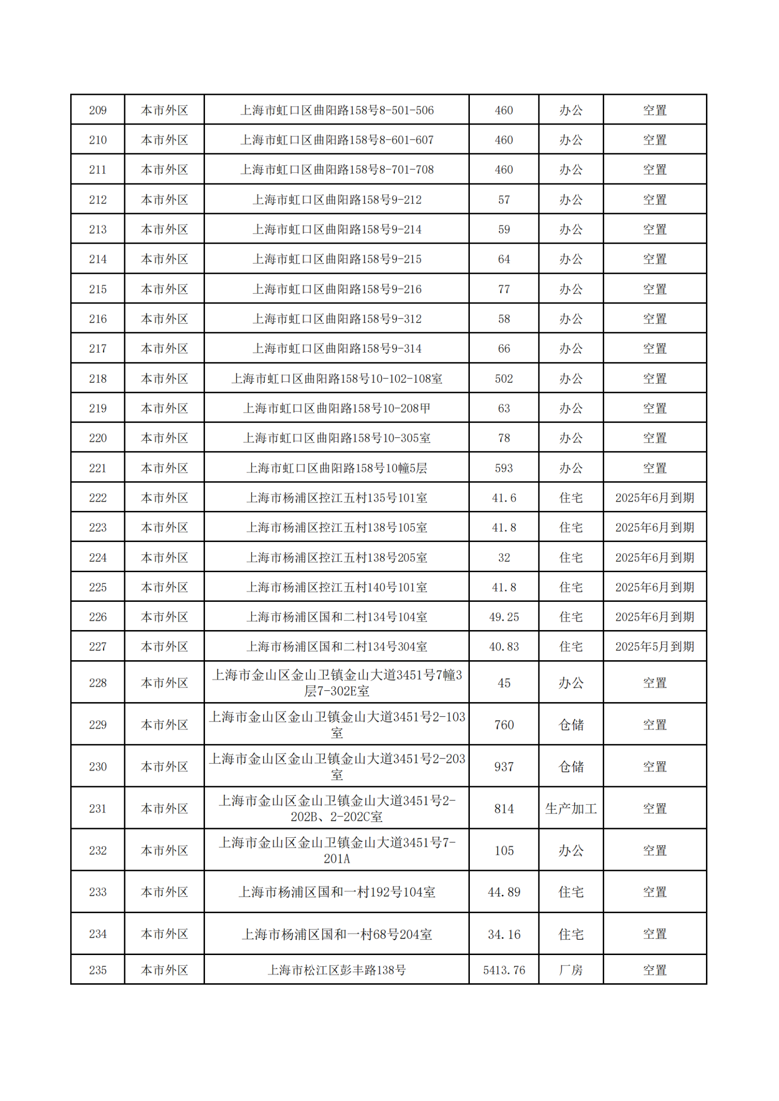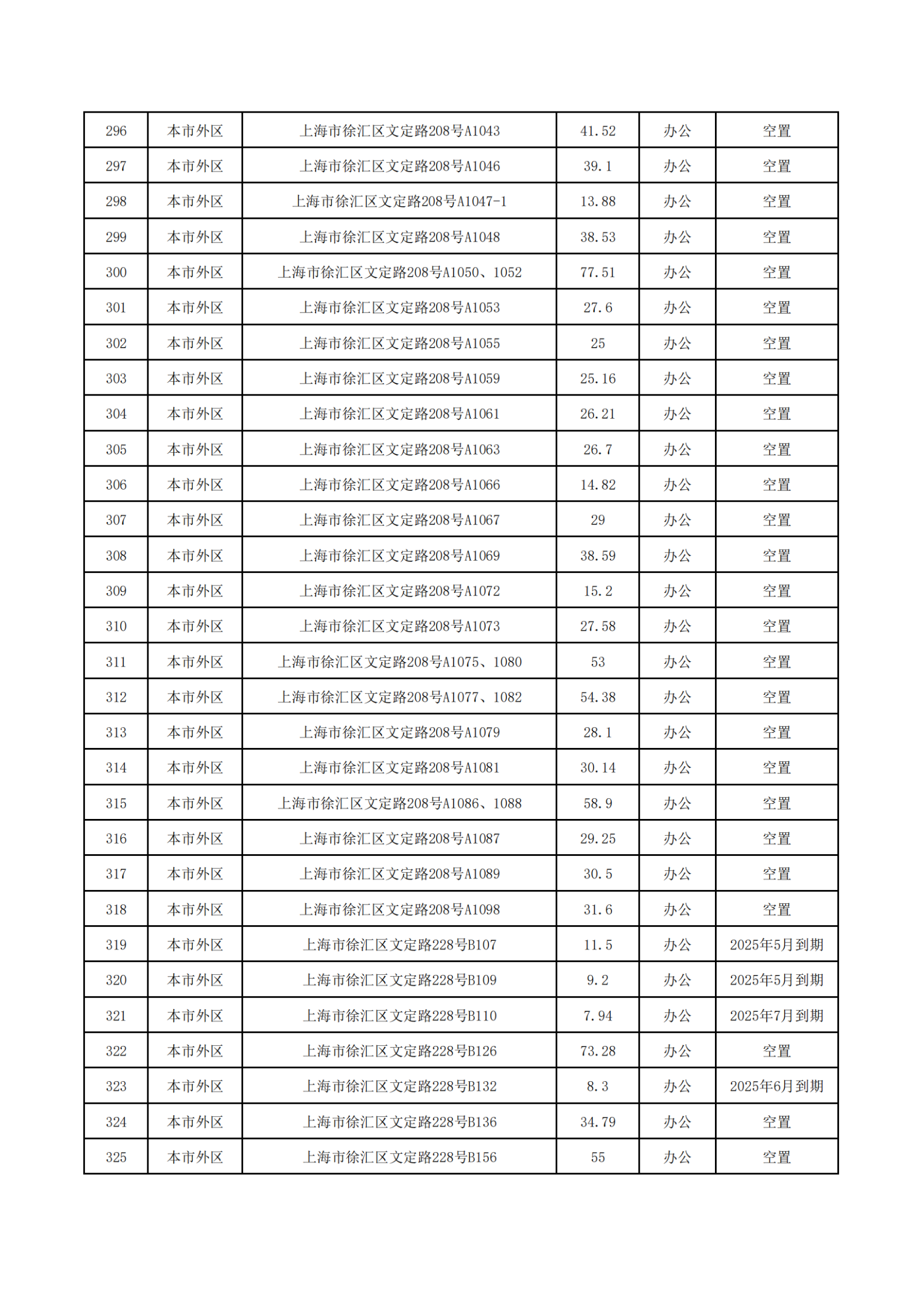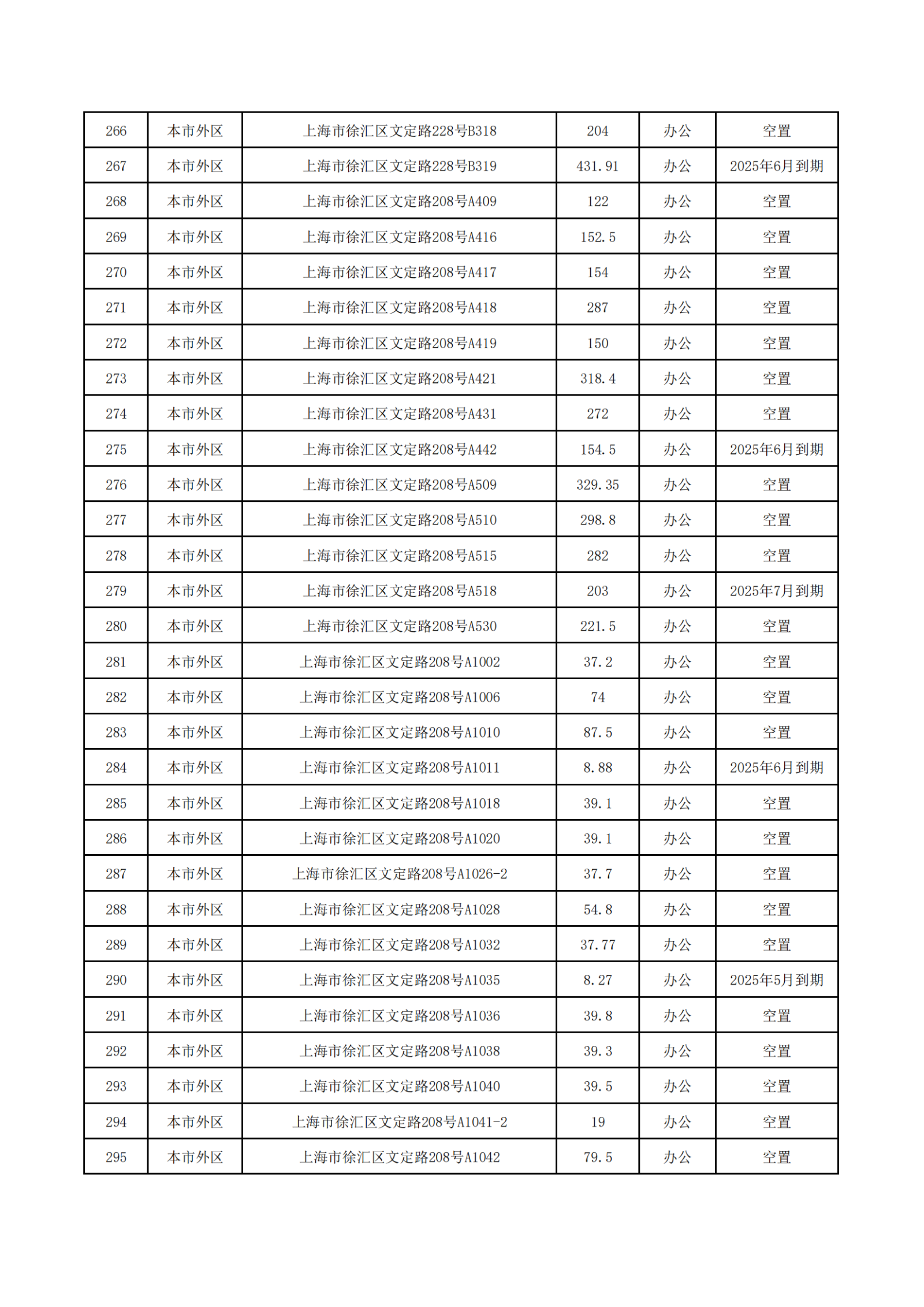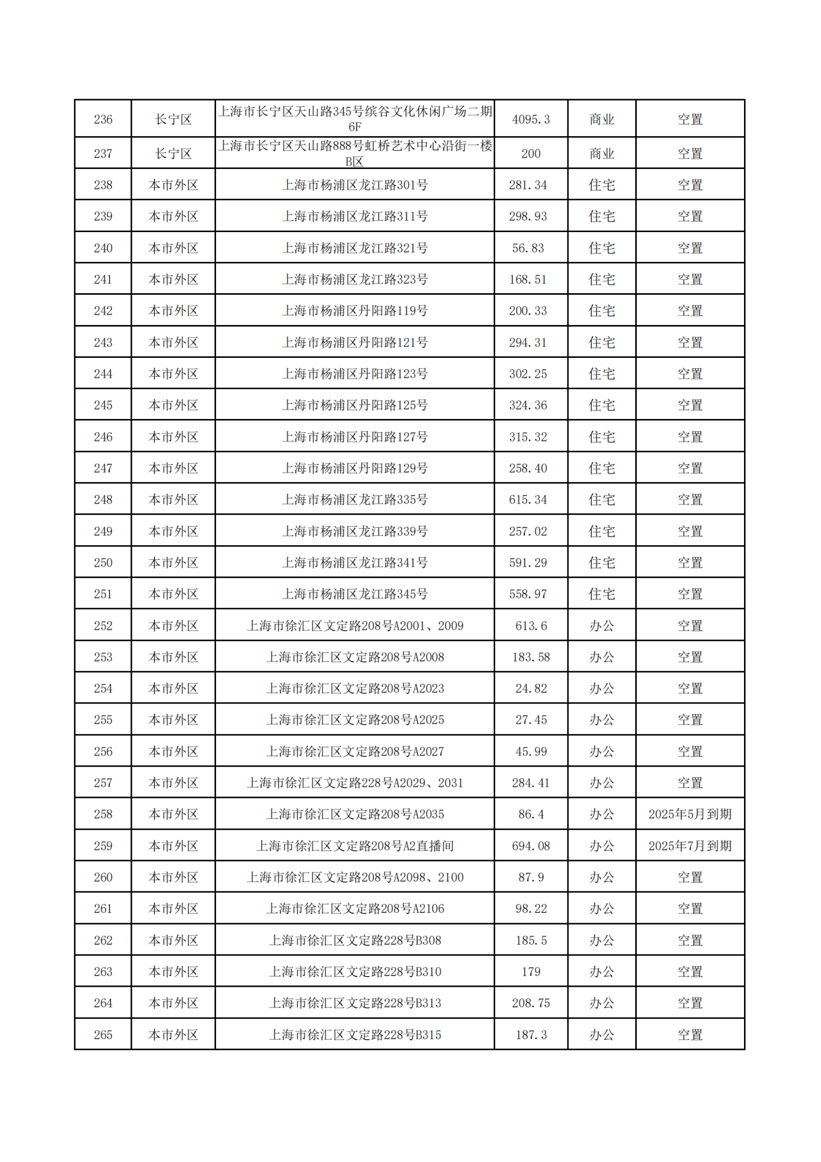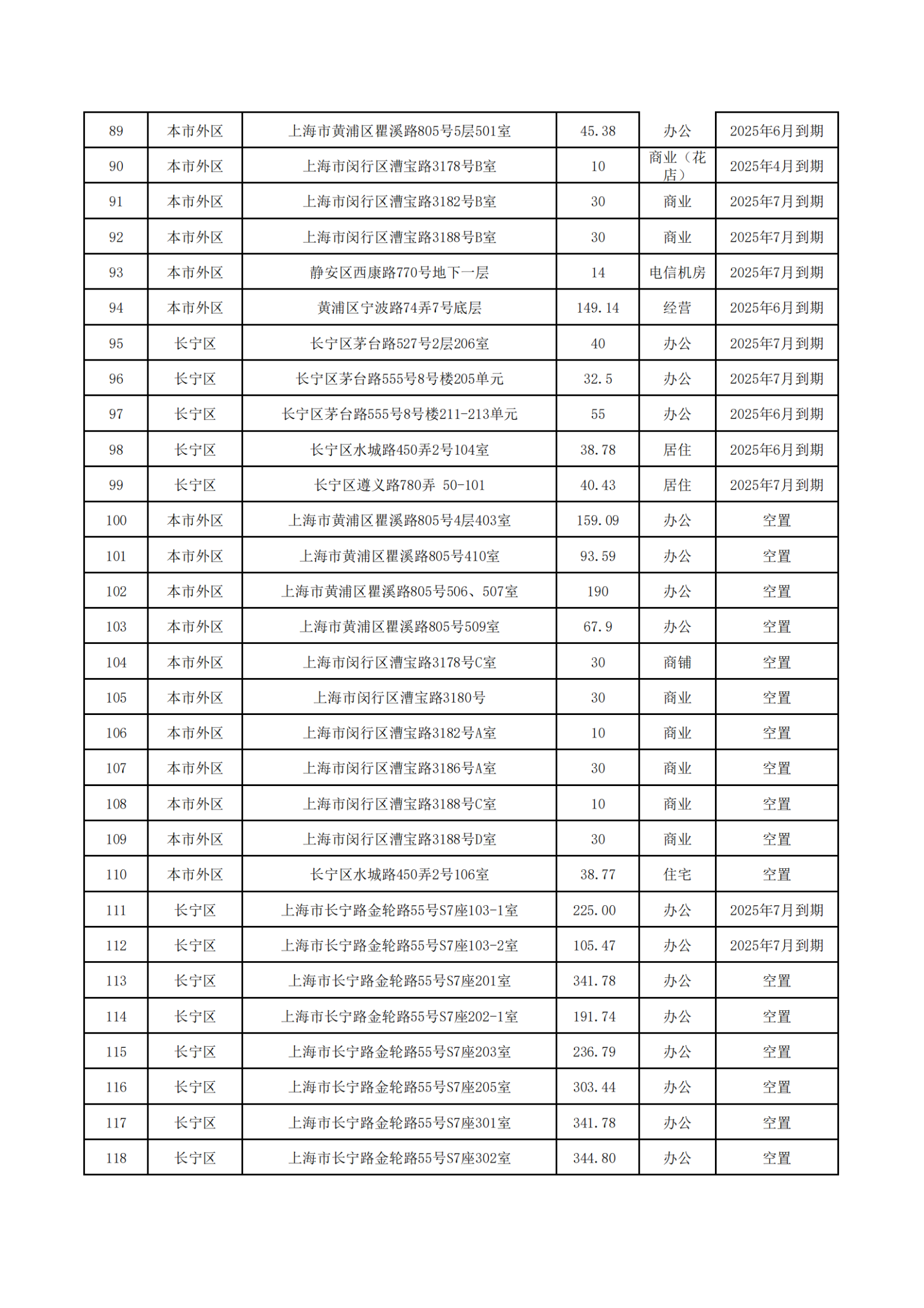 上海服裝集團(tuán)2025年5-7月到期和目前空置房源信息公開
