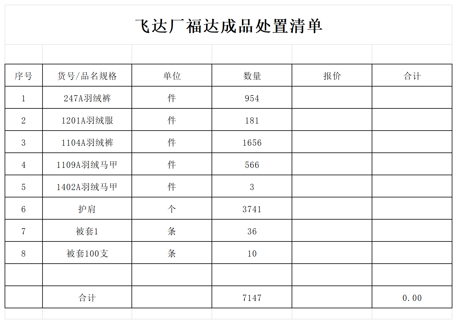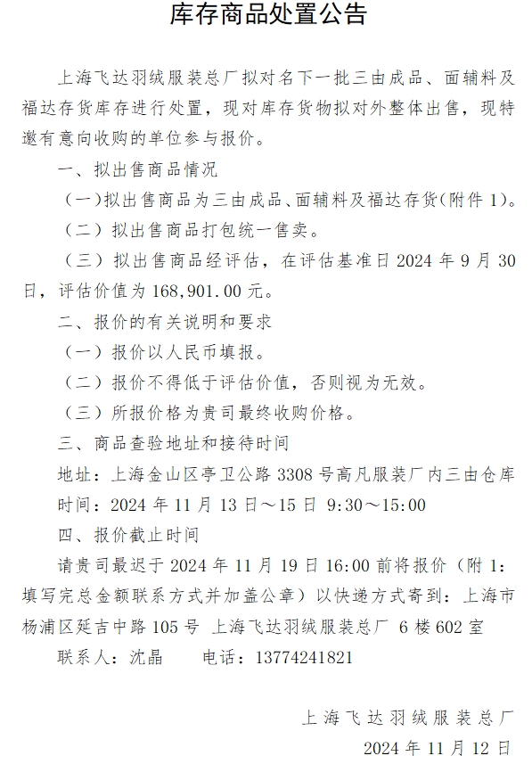 庫(kù)存商品處置公告