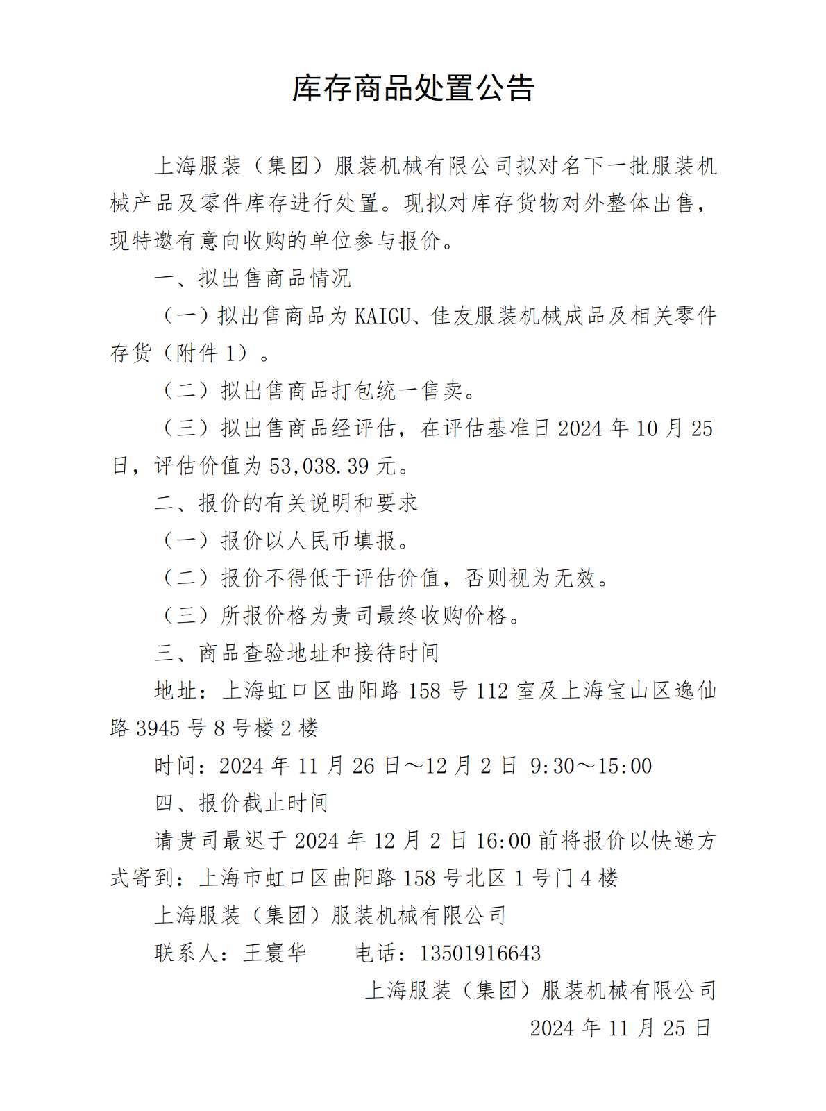 上海服裝(集團(tuán))服裝機(jī)械有限公司原材料處置清單