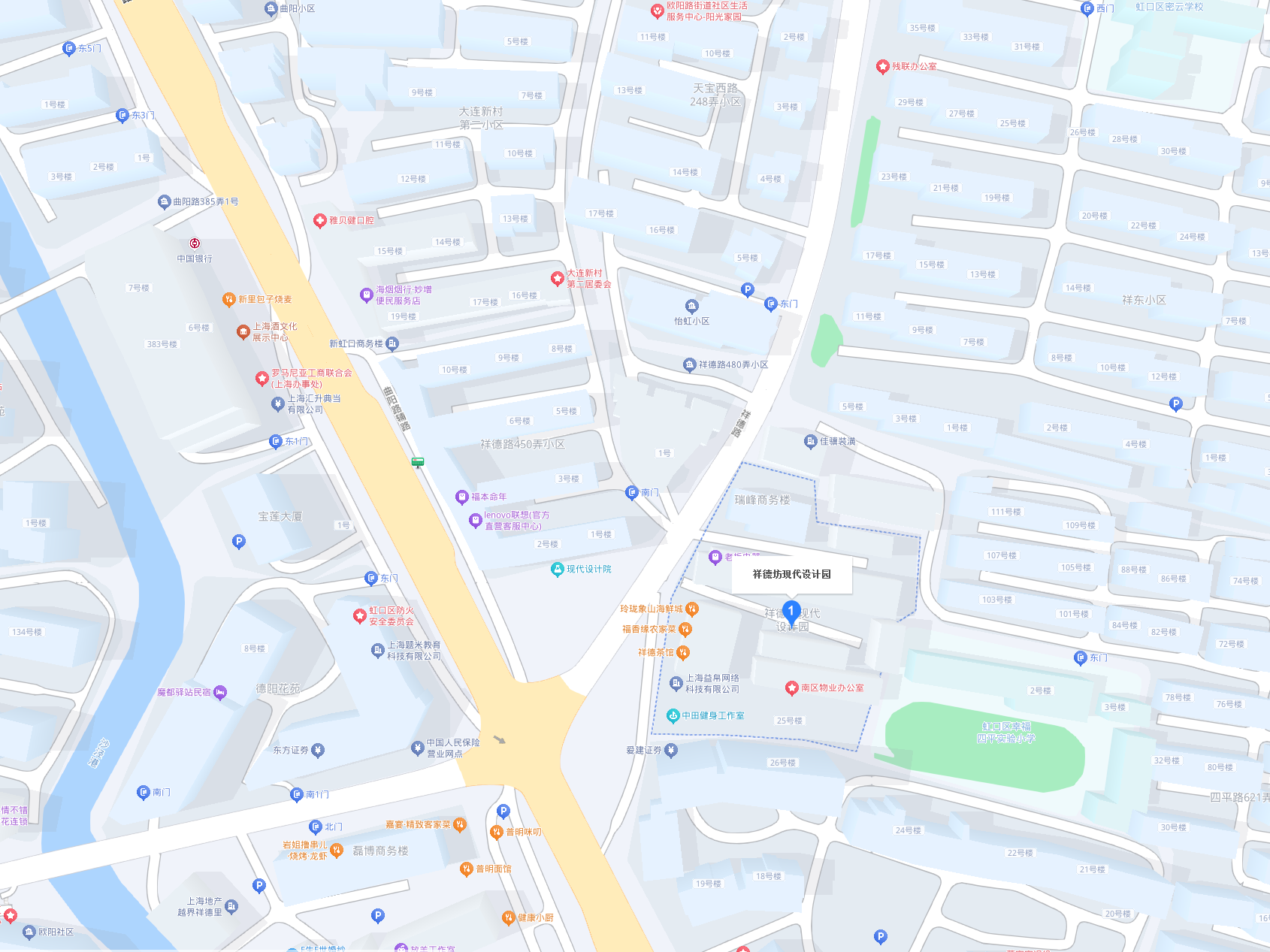 上服祥德坊現(xiàn)代設(shè)計(jì)園位于虹口區(qū)曲陽路158號(近祥德路),毗鄰瑞虹天地商業(yè)中心、魯迅公園、和平公園;步行至地鐵8號線曲陽路站、10號線郵電新村站僅需5-8分鐘,交通區(qū)位優(yōu)勢明顯。